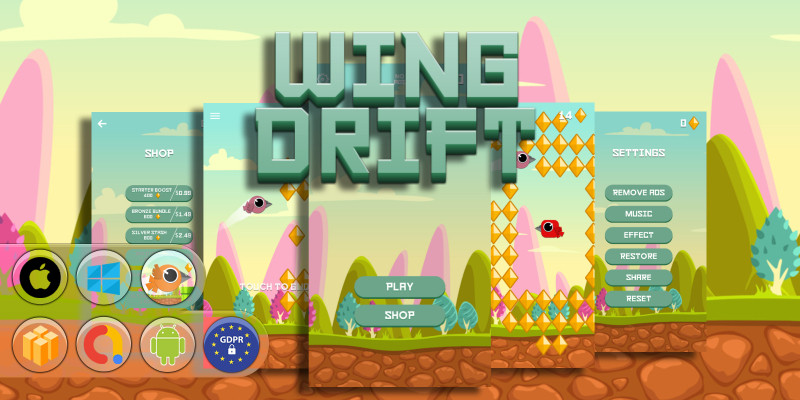 Wing Drift - Buildbox Template. Jump, glide, and survive powerful winds in the thrilling world of Wing Drift!