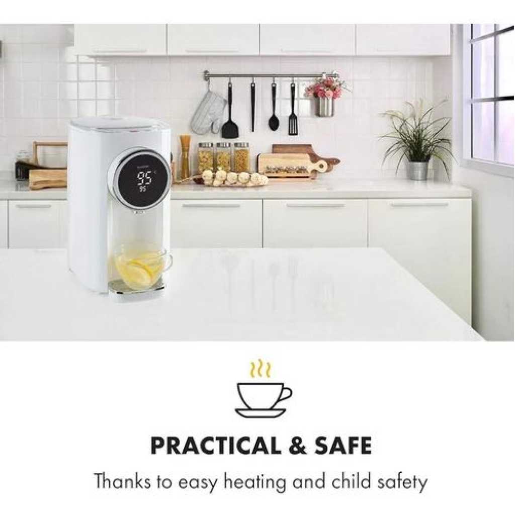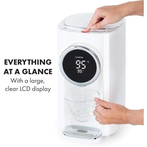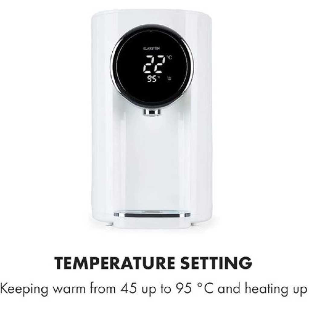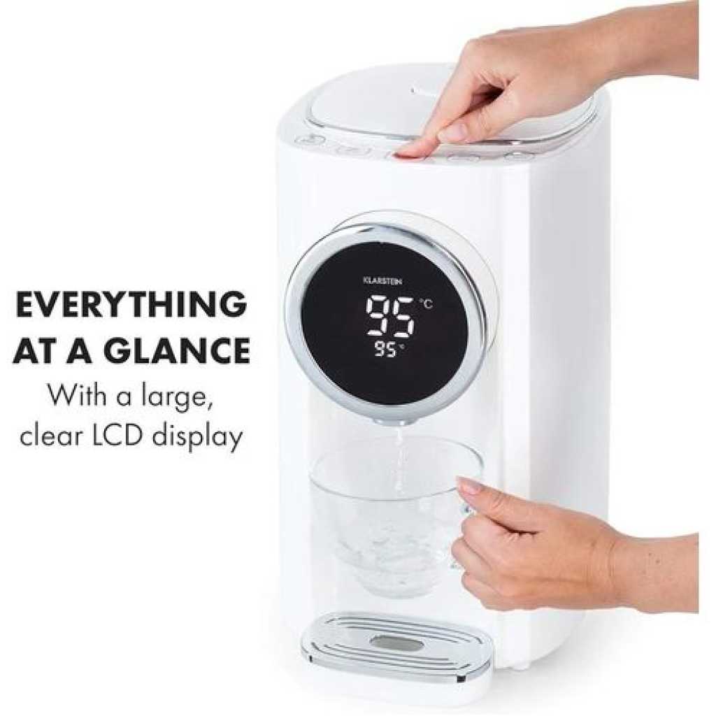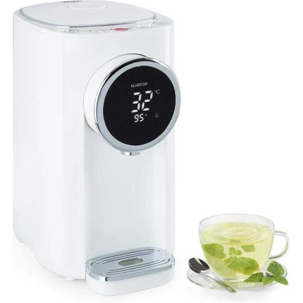 Capacity: 5.0L Shell material: plastic, Liner material: food grade 304# stainless steel liner Color: white Cord Length:1.2m Function:large-screen LCD display, child lock / long press to unlock, temperature selection, rapid cooling, dechlorination and then boiling, tap water / pure Water, shut-off water/electric water outlet, water shortage reminder, recessed drain valve, anti-dry and over-temperature protection Key Features: Touch operated Lcd display Inner kettle is designed with premium grade stainless steel Capacity is 5 liters It has a water shortage reminder Anti dry protection Over temperature protection Rapid cooling Temperature selection Rapid cooling Smart and touch operated kettle