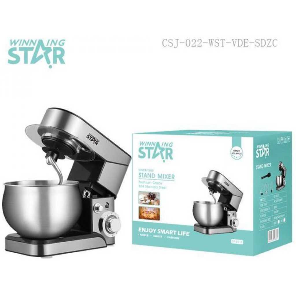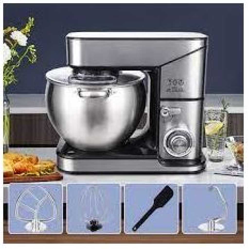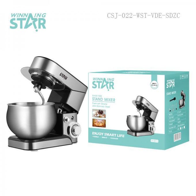 Key Features: Winning star 6-Speed Stand Mixer Cook Machine 10L with Stainless Steel Bowl Copper Motor Aluminum Dough Hook Flat Agitator Spatula 304 Balloon Whisk LED Indicator Light 4 Sucker Feet BS Plug- Silver 6 speed control with pulse function – One touch control – 10 Liters stainless steel mixing bowl – Stainless steel Attachments: Whisk, Mixing blade & Dough Hook – Pure copper motor – Planetary mixing action – Tilt-head design electric mixer – Stainless steel whisk for light mixture – Cream, Egg – Stainless steel beater for medium mixtures – Salad, Cookies – Stainless steel dough hook for heavy mixtures – Bread, Pizza