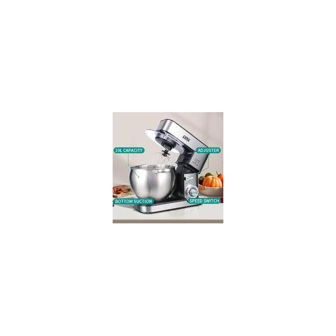 Winning star 6-Speed Stand Mixer Cook Machine 10L with Stainless Steel Bowl Copper Motor Aluminum Dough Hook Flat Agitator Spatula 304 Balloon Whisk LED Indicator Light 4 Sucker Feet BS Plug- Silver The 6-Speed Stand Mixer with pulse function, is a great addition to your kitchen to simplify your everyday tasks. Create fluffy meringue or whip cream for delicious desserts with ease when you use the whisk beater in your Saachi stand mixer. Take the effort out of kneading dough! Simply use the dough hook and let your mixer take care of preparing dough for a home baked loaf. Features – 6 speed control with pulse function – One touch control – 10 Liters stainless steel mixing bowl – Stainless steel Attachments: Whisk, Mixing blade & Dough Hook – Pure copper motor – Planetary mixing action – Tilt-head design electric mixer – Stainless steel whisk for light mixture – Cream, Egg – Stainless steel beater for medium mixtures – Salad, Cookies – Stainless steel dough hook for heavy mixtures – Bread, Pizza