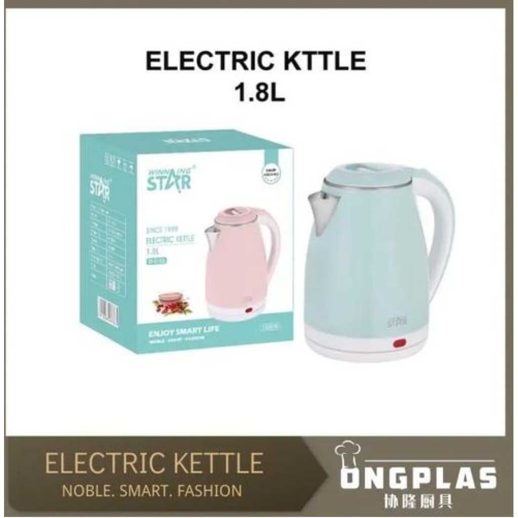 Winningstar 1.8 Litre Quick Boiling Double Layer Stainless Steel Electric Kettle- Multicolor.