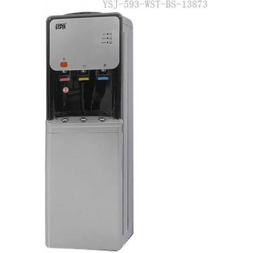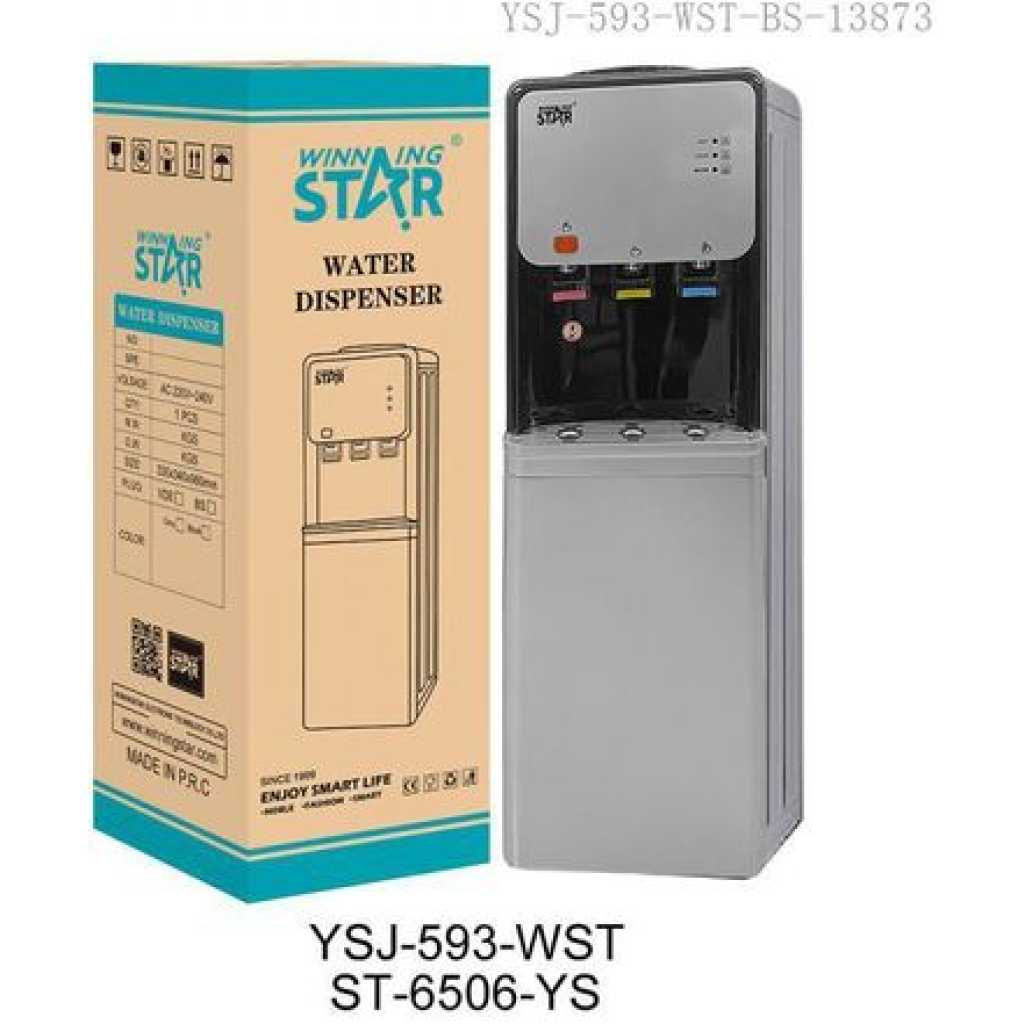 Key Features: Winningstar Multifunctional Vertical Water Dispenser with Hot Cold Room Water 100W Refrigeration Water Outlet*3 304 Stainless Steel Hot/Cold Water Tank Over Current Protection Automatic Constant Temperature 1.6m Copper Cable BS- Multicolor 3 Faucet provides Hot, Normal & Cold Water Hot Water Child Safety Lock With Refrigerator Cabinet to keep your food safe and preserved This daily home utility appliance comes with a compact refrigerator to store food and beverages Anti-bacterial inner tank ensures safe drinking water Supports fast and easy cleaning efficiently Premium quality construction ensures durability Power 610W Hot Temperature 85-90C Cold Temperature 4-12C Water Dispenser with Fridge Heating Power/Refrigeration Power 500/110W Height 97 Cm Voltage 220-240