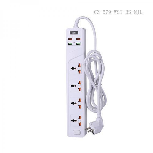 4-outlet extension lead is also a surge protector with a 300cm power cord,offer a variety of charging options for electronics and mobile devices, bringing an ideal solution for your power supply needs. Charging technology enables each USB port to detect and deliver an ideal input current of up to 2.1A (the actual current is decided by the demand for the devices). The extension lead with usb slots also with an on/off switch allows control for AC outlets and USB ports, while sliding safety covers protect your children and pets from each unused outlet. Sleek rectangular design, ideal for home and office. 350-joule surge protector, protects you devices from power spikes. Protected against over voltage, over current, overload, short-circuiting, and poor contact. Product Description Name Socket Packing PVC bag packing Voltage AC 110V-250V Frequency 50/60Hz Power 10A/2500W Material PP Flame Retardant And Fireproof Material, One Whole Connected With Copper, With Safety Door, Pure Copper Power Cord, Length 3 M (Total Length) Function Key Features: 4-outlet extension lead is also a surge protector with a 300cm power cord,offer a variety of charging options for electronics and mobile devices, bringing an ideal solution for your power supply needs. Charging technology enables each USB port to detect and deliver an ideal input current of up to 2.1A (the actual current is decided by the demand for the devices). The extension lead with usb slots also with an on/off switch allows control for AC outlets and USB ports, while sliding safety covers protect your children and pets from each unused outlet. Sleek rectangular design, ideal for home and office. 350-joule surge protector, protects you devices from power spikes. Protected against over voltage, over current, overload, short-circuiting, and poor contact.