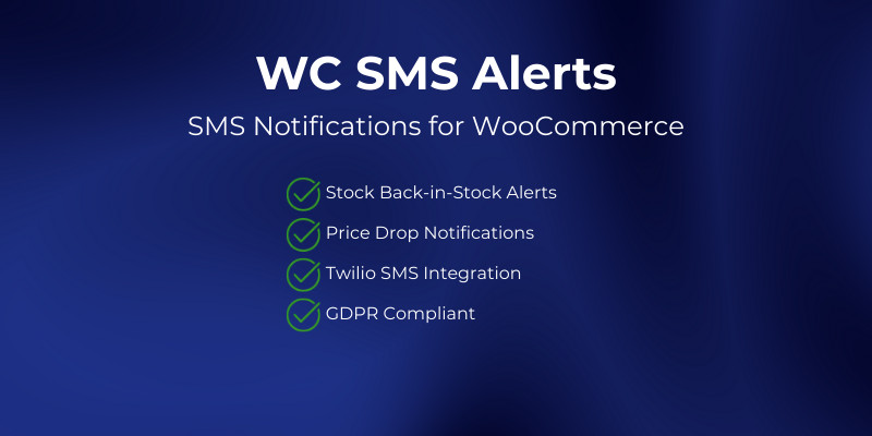 WooCommerce SMS Alerts. Automated SMS alerts for WooCommerce. Notify customers instantly when products restock or prices drop. Powered by Twilio. GDPR.