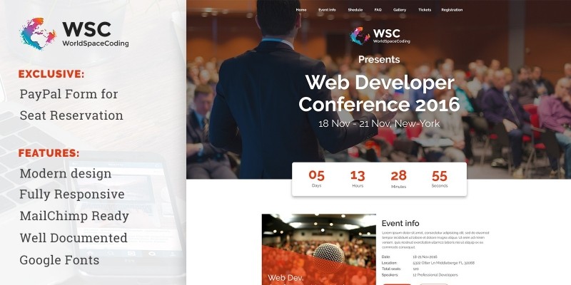 WSC Meeting - Multipurpose Meeting Template. WSC Template is a clean, modern & creative Meeting Landing page.