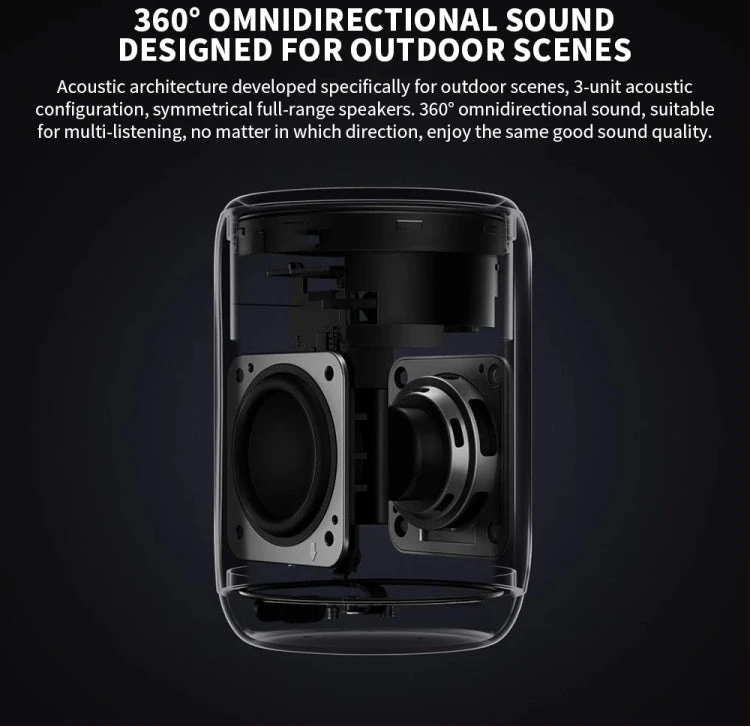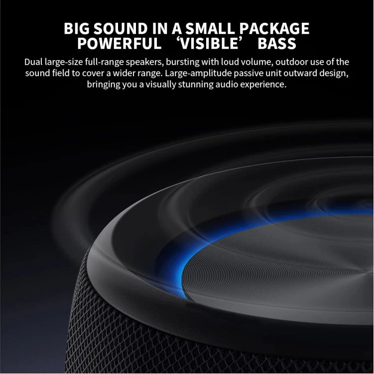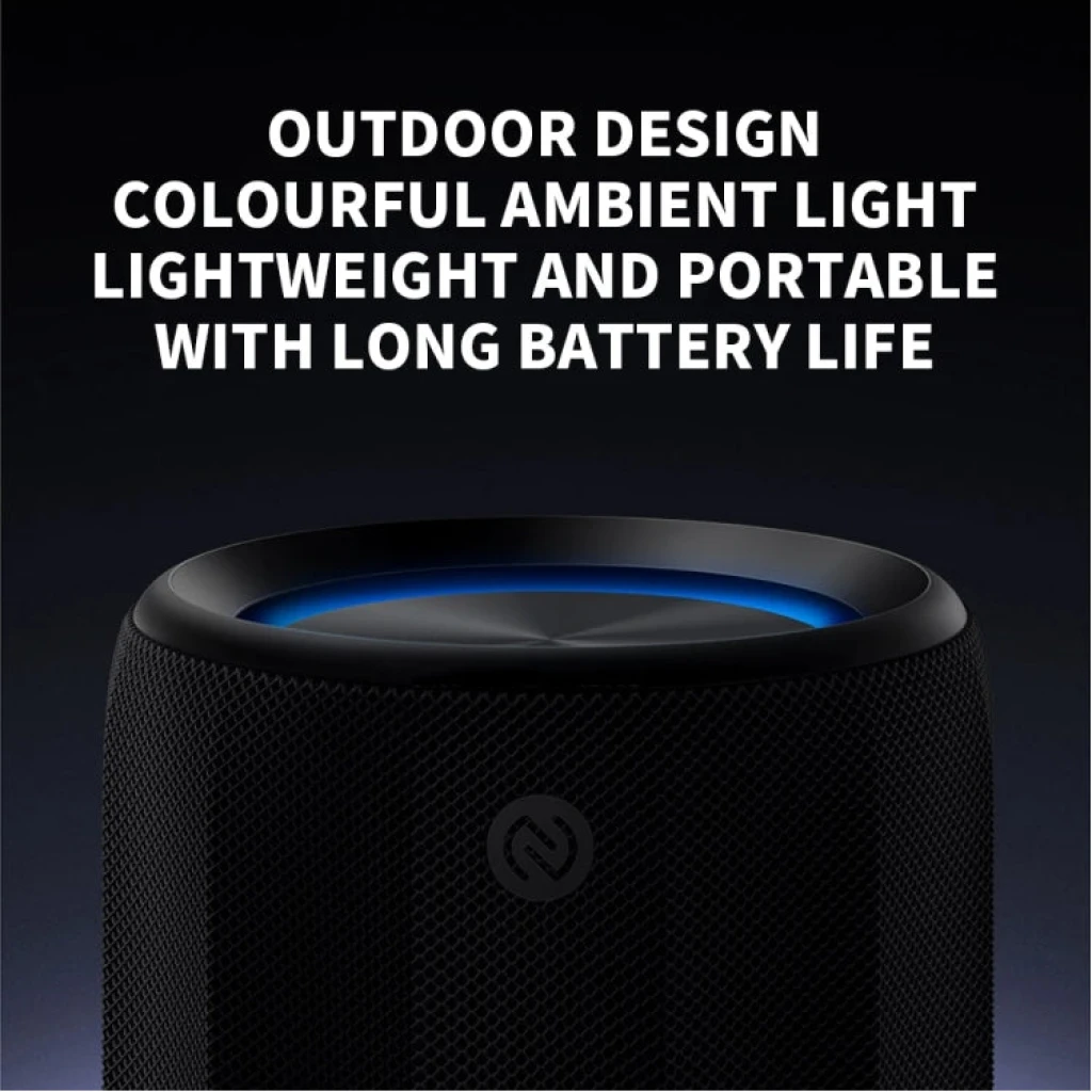 Features 1. Equipped with Bluetooth 5.3 technology, fast connection and stable transmission. 2. The top RGB atmosphere ring light strip, music sounds, sound and light are linked, full of atmosphere. 3. IP67 dustproof and waterproof design, the body is made of woven mesh, wear-resistant and durable, and the bottom of the body is shock-absorbing soft rubber to alleviate the damage to the body caused by sudden impact. 4. Built-in 2000mAh battery, full power supports 11 hours of music playback, long-lasting battery life. Parameters 1. Product size: 10.3cm x 7.3cm x 7.3cm 2. Net weight: 330g 3. Bluetooth: 5.3 4. NFC: Support NFC connection, support music seamless relay 5. Rated power: 3W x 2 6. Battery capacity: 2000mAh 7. Charging interface: Type-C 8. Input parameters: 5V 2A Package List Speaker x 1 USB-C to USB-C charging cable x 1 User manual x 1