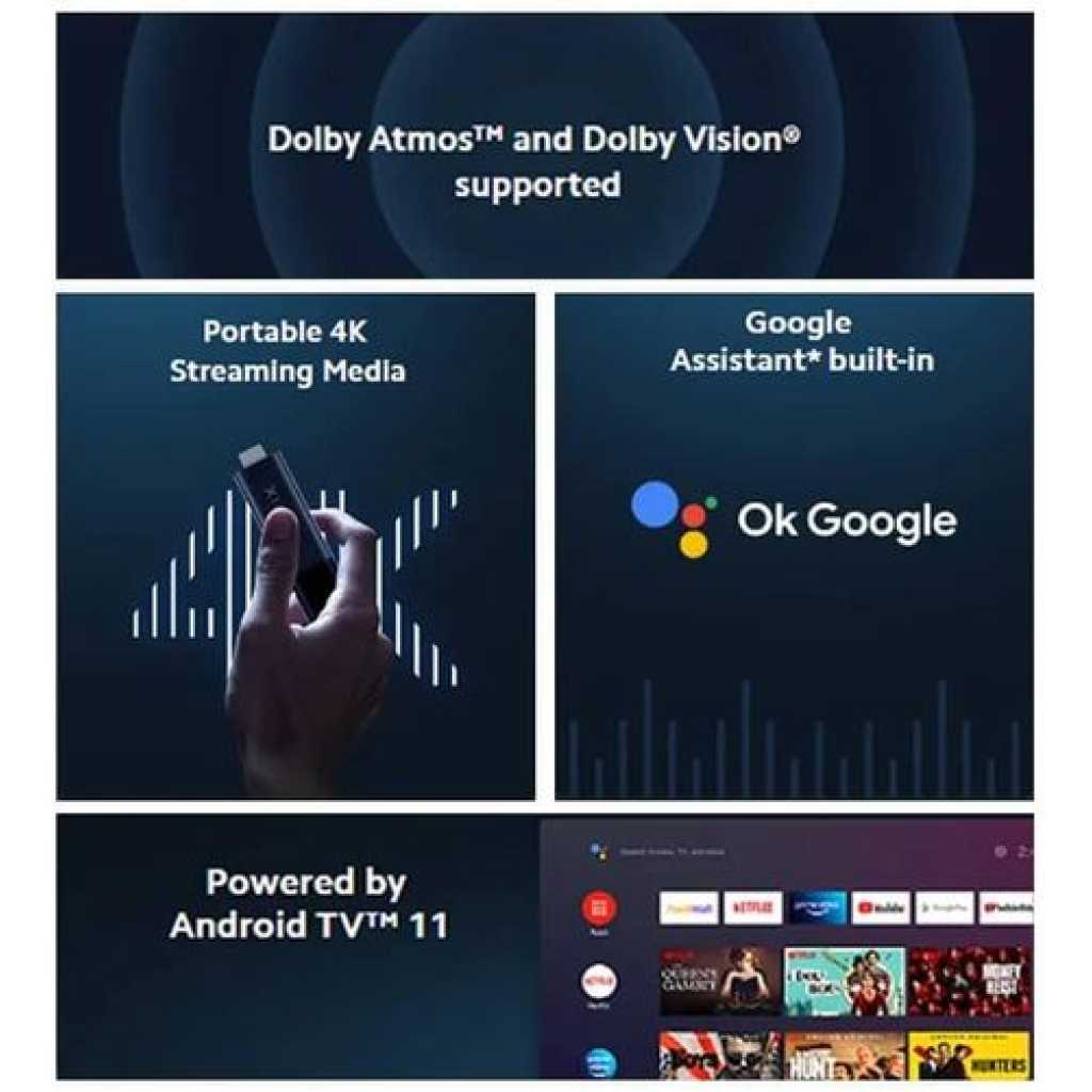 Key Features: XIAOMI Mi TV Stick Streaming Stick 4K 2022 Latest Streaming Device 4K HDR Android 11 with Google Assistant Voice Remote Control Chromecast Built-in -Black Experience the wonder of Android TV 11: The Xiaomi TV Stick 4K comes equipped with Android TV 11, delivering a simple yet immersive experience. Discover 400,000+ movies and shows from across your favorite apps. Get 7000+ apps from Google Play. Play music and games, cast from any device, and more. The Ultimate Viewing Experience: 4K ultra-high-resolution output takes video quality to another level. Partaking in a vivid and immersive visual experience. Surround sound for a superior audio experience: Whether you’re into music, games, films, or TV dramas, delivers greater richness and realism to sounds than ever before. Make your TV smarter with Google Assistant: With Google Assistant, you can enjoy quick access to tons of entertainment, search for information, and control your smart home devices. It also brings the convenience of speech recognition to non-smart TVs. Small yet powerful: The compact form factor of Xiaomi TV Stick 4K features a quad-core processor that delivers powerful performance. Whether you’re watching a high-resolution film, listening to high-quality music, or playing games, speed and stability are what you can expect. A new era of smart connectivity: With the smart Android TV system, Xiaomi TV Stick 4K offers you a new multimedia experience anytime, anywhere. Compact and portable, it brings a smarter life to your displays. 360° Bluetooth + IR remote control: The intuitive button layout and Bluetooth allow you to access your favorite content much quicker from any angle. With the built-in IR, you can also control power and volume on your TV or soundbar, all with a single remote. Put your little screen on the big screen: Stream the entertainment you love from your phone, tablet, or laptop to your TV using Chromecast built-in. Lightweight and portable design: Use it where you need it: the lightweight and compact form factor of Xiaomi TV Stick 4K makes it easy to use and carry. Watch your favorite video content anytime and anywhere, whether you’re home or away.