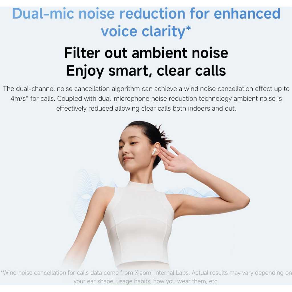 Key Features: Long Playback and Quick Charging: Up to 6 hours of continuous playback on a single charge, and can be used with a charging case for up to 30 hours of music playback. In addition, it has a fast charging feature that allows up to 1 hour of playback time on just 10 minutes of charge, so you don’t have to worry about sudden online meetings Powerful Bass and Clear Sound Quality: Equipped with a 14.2mm dynamic driver and precise tuning with Xiaomi Acoustic Lab, you can enjoy an amazing sound experience with solid bass Clear Call Voice with Dual Mic Noise Reduction:Dual microphone noise reduction reduces wind noise up to 4m/s when phone calls. It also effectively reduces ambient noise so you can make clear calls indoors or outdoors 5 Equalizer Settings via Xiaomi Earbuds:Built-in 5 Equalizer settings to support a variety of scenes. For example, you can experience a powerful, dynamic drum beat in bass enhanced mode, or even enjoy the singer voice clearer in vocal mode 14.2mm dynamic driver, 5 Tuning Modes
