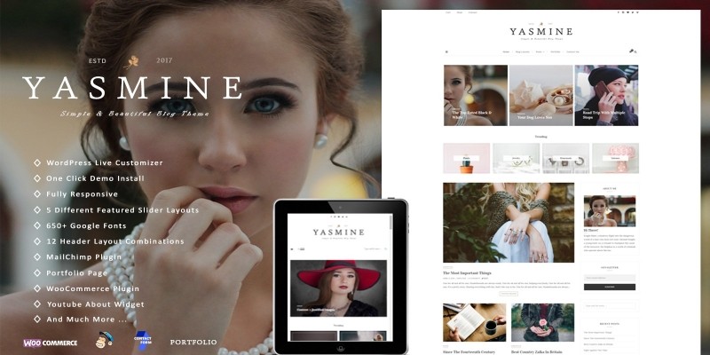 Yasmine - Multipurpose Shop WordPress Blog Theme. Yasmine is a very stylish, elegant and powerful multipurpose WordPress blog theme.