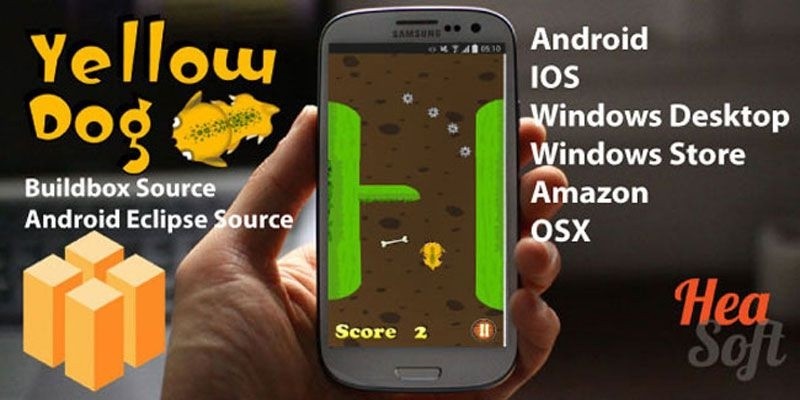 Yellow Dog - Android Studio Buildbox App Template. Little yellow dog, if you want bone you have to run and you have to avoid enemies!