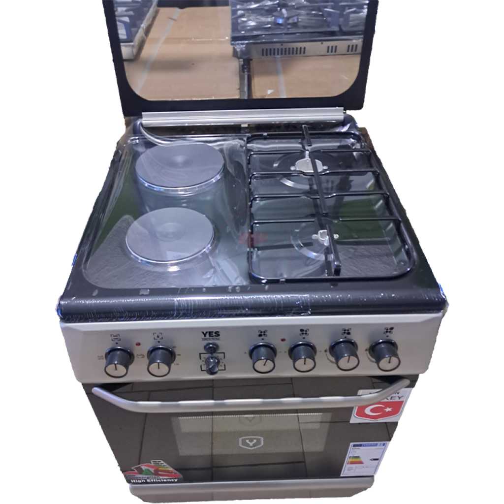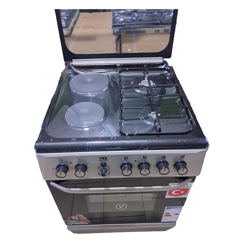 YES Cooker 2- Gas Burners + 2 Electric Plates, 60x60cm YS-6622GTG; Electric Oven & Grill, Auto Ignition, Top Glass – Silver. 60Cm By 60 Cm 2 Europool Gas Burners & 2 Rapid Electric Plates Free Standing Oven 60X60 Electric Oven & Grill With Light Stainless Steel Top Cover Push Button Auto Ignition 2 Europool Gas Burners Oven Lamp and Timer Cool Door Oven Tray Adjustable Feet Heavy Duty Control Panel Easy to clean 1 Year Warranty Key Features: YES Cooker 2- Gas Burners + 2 Electric Plates, 60x60cm YS-6622GTG; Gas Oven & Grill, Auto Ignition, Top Glass – Silver. 60Cm By 60 Cm 2 Gas Plates & 2 Electric Plates Free Standing Oven 60X60 Gas Oven With Light Stainless Steel Top Cover Self Ignition