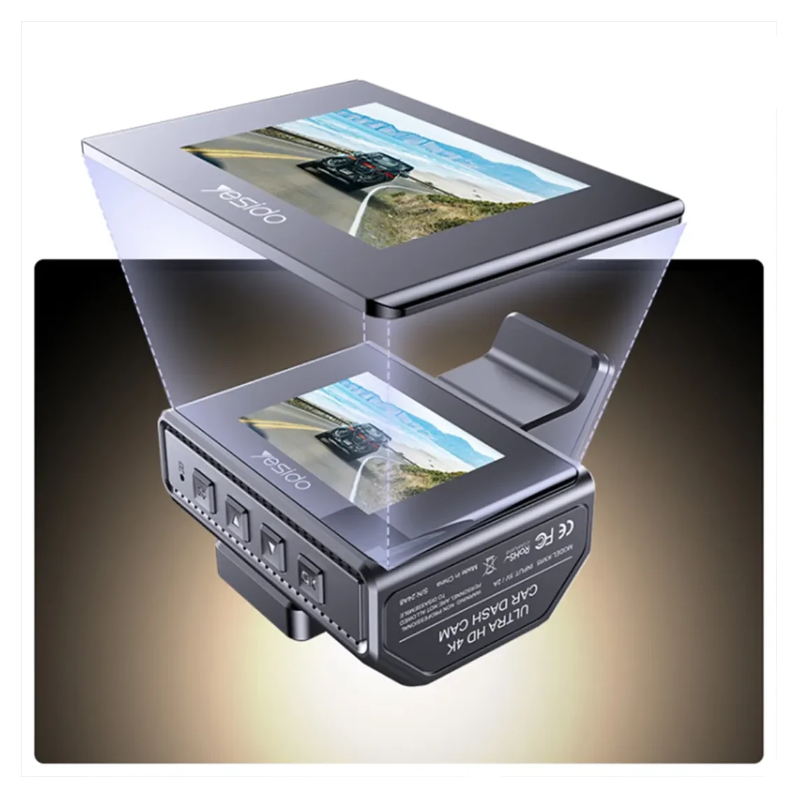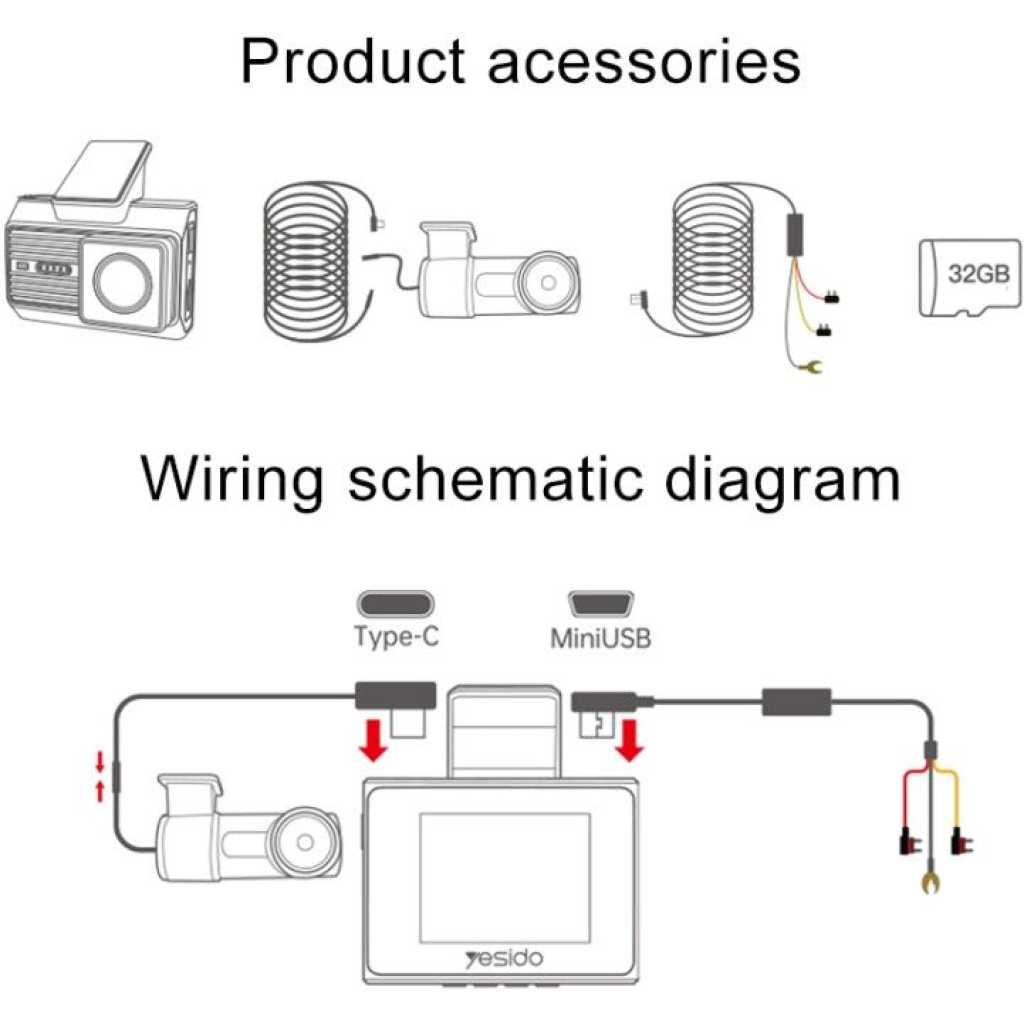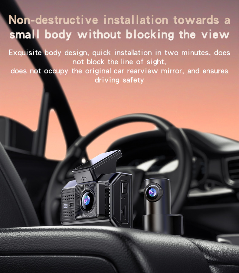 Yesido KM15 4K Driving Recorder Key Features: 1. Material: PC+ABS. 2. Chips: NT96670. 3. Sensor: GC4653 (front) / GC2083(back). 4. RAM: 2G/32Mb. 5. ROM: Max 256G TF card. 6. Pixel: Max 4K/1K. 7. Max 24 hours Circle Record (256G) 8. With a 32Gb TF card.