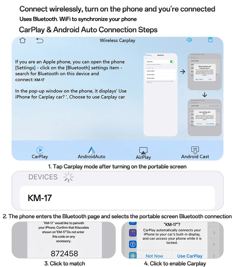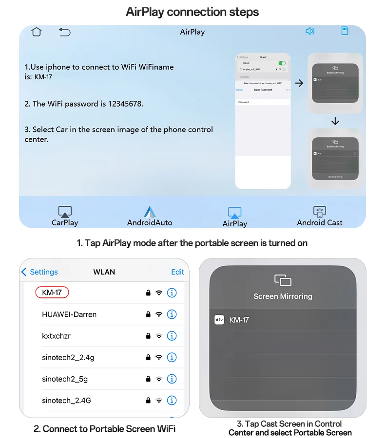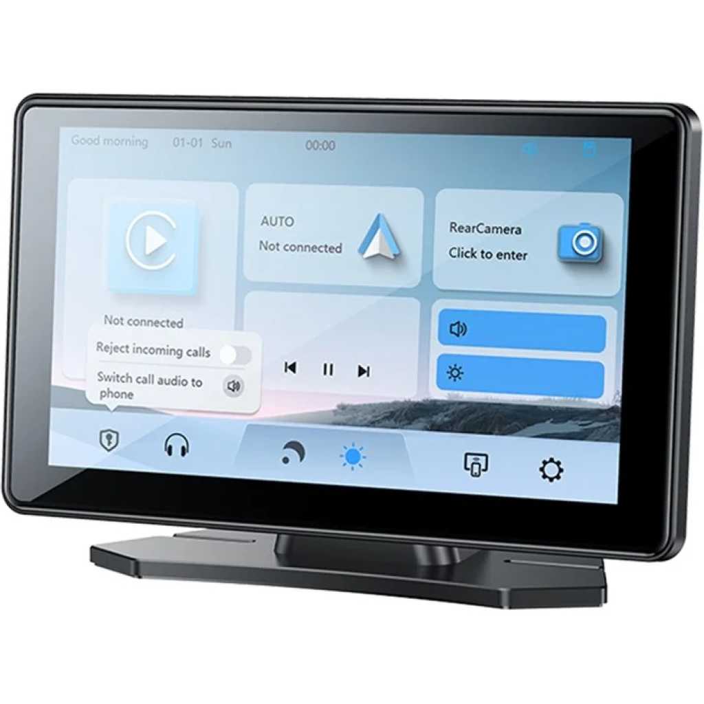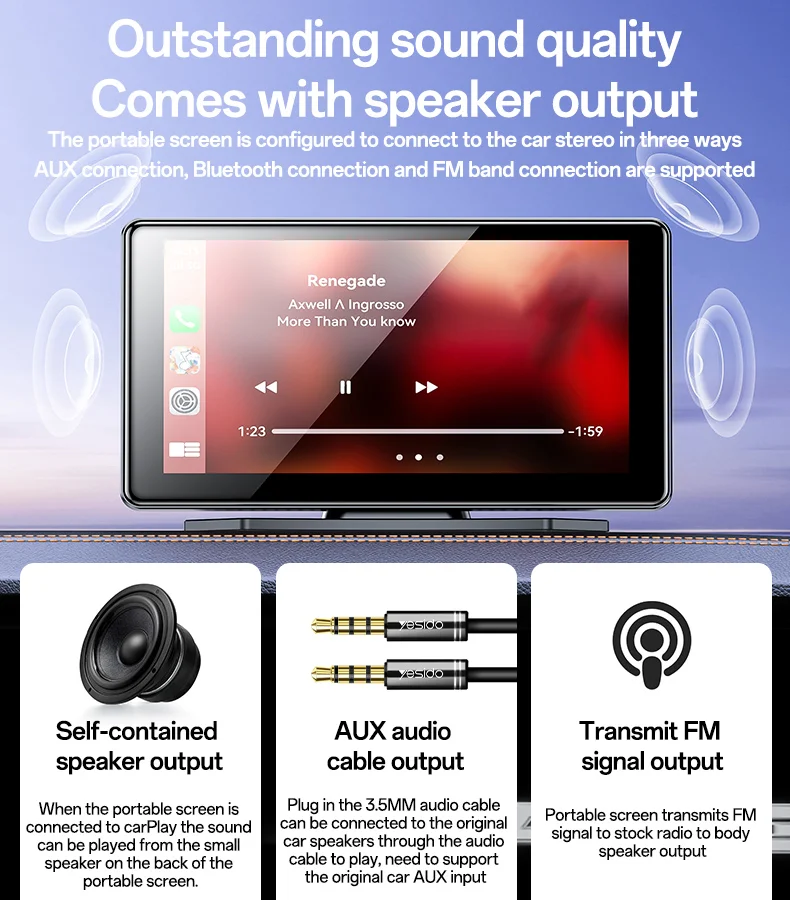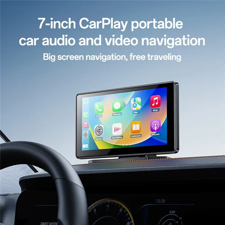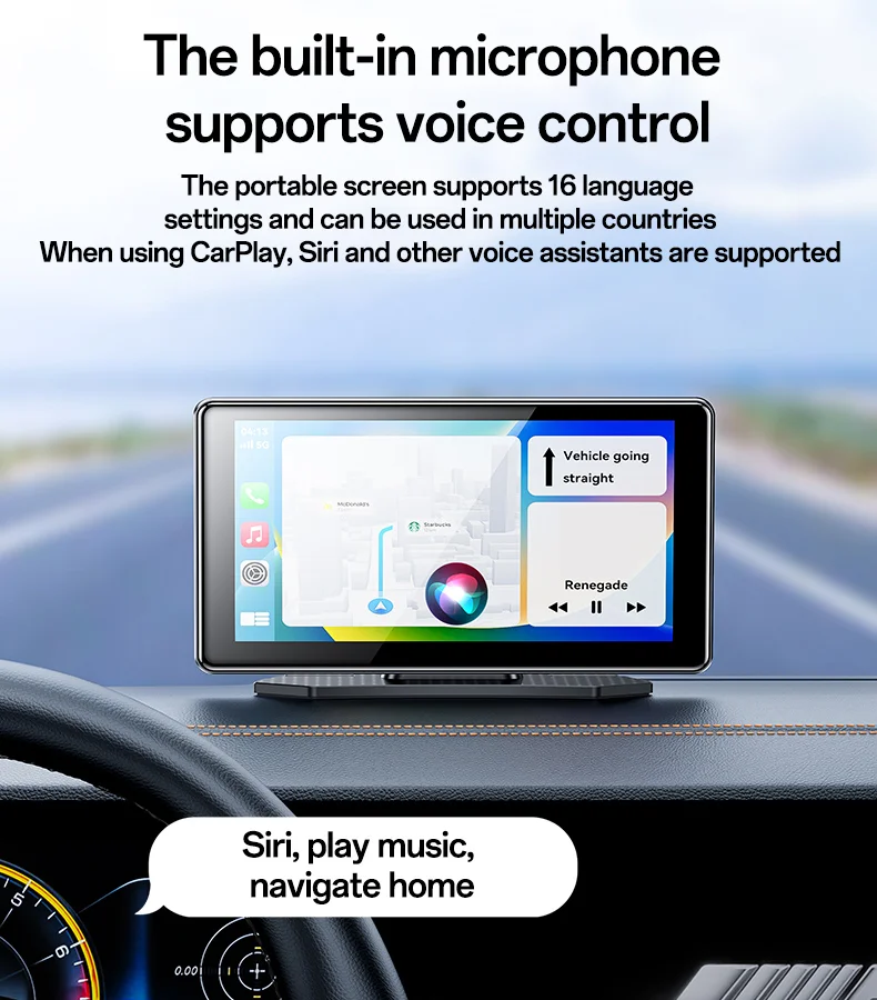 YESIDO KM17 7-inch Car Driving Recorder WiFi + Bluetooth Carplay Android Auto Multimedia Player for iPhone Android 7-inch touch screen 60Hz HD display: 7-inch touch screen with 2.5D curved glass, navigation and listening to songs at the same time. 60Hz smooth followers, resolution 1024(W)X600(H)PX CPU performance enhancement DDR3+Bluetooth 5.0: DDR3-64MB memory, power on and connect. Smooth 60Hz usage. Using CarPlay and other performance depends on phone performance when using in-car systems Unobstructed view Built-in microphone supports voice control: Portable screen support 16 heavy language settings, multi-country universal CarPlay support Siri and other voice assistants when using navigation Widely compatible 3-in-1 car navigation: Supports CarPlay, Android Auto, AirPlay. Wireless in-vehicle system allows you to use synchronized apps on your phone securely in your car Outstanding sound quality, Comes with speaker output: The portable screen is configured to connect to the car stereo in three ways. AUX connection, Bluetooth connection and FM band connection are supported Strong adhesive base, Adapt to 99%of cars: Stable adhesion, complex road conditions, wild shaking does not fall off. Strong adhesive, suitable for 99%of car interiors, one-click installation