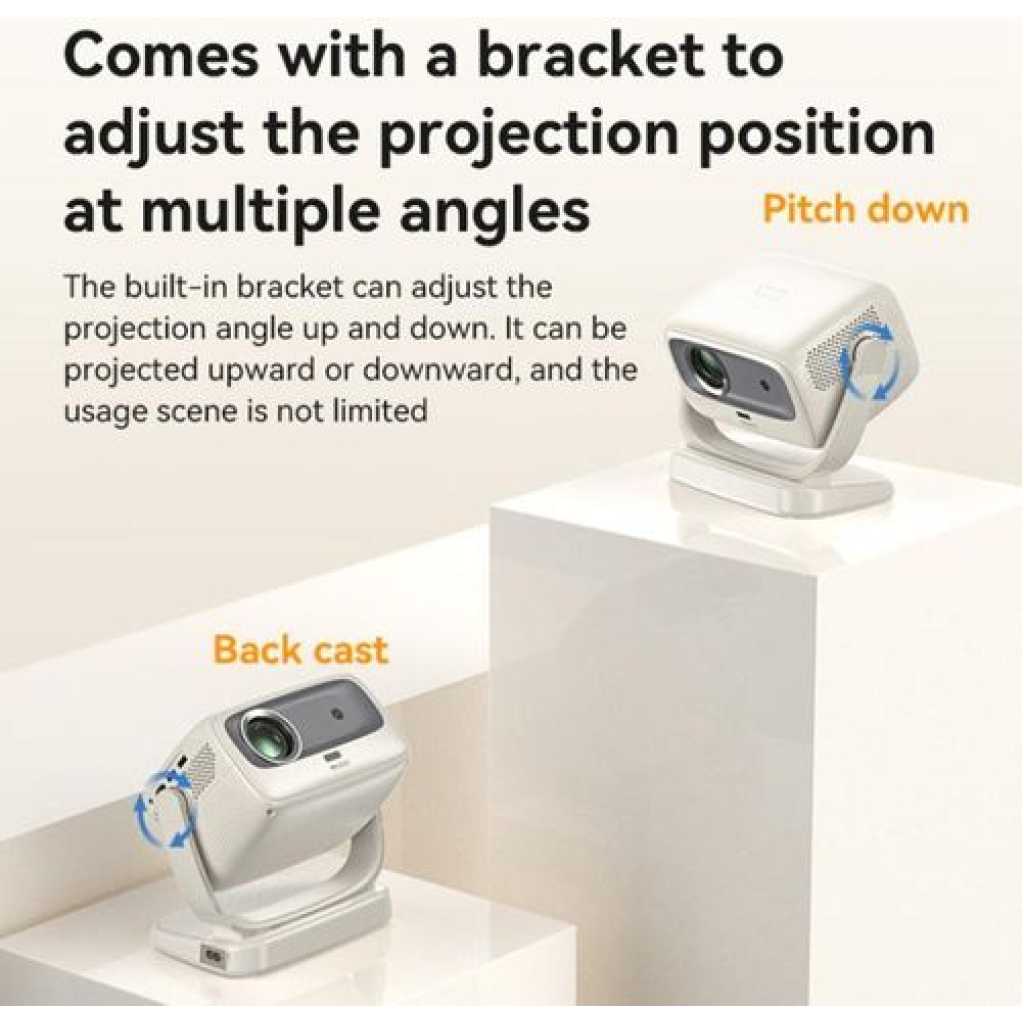 200-Lumen Brightness: Delivers vibrant and clear images, making it suitable for both indoor and outdoor use. 720p HD Resolution: Provides high-definition visuals for a captivating viewing experience, perfect for movies, presentations, and gaming. Auto Focus: Automatically adjusts focus for optimal image clarity, ensuring hassle-free setup and viewing. Surround Sound: Equipped with high-quality surround sound technology for an immersive audio experience that enhances your media. USB Playback: Easily connect USB devices to play videos, music, and photos directly from your storage, adding convenience to your entertainment options. OverviewThe HT03 Android Projector is a powerful multimedia device designed to deliver an immersive viewing experience. With 200 lumens of brightness and 720p HD resolution, it projects clear and vibrant visuals, perfect for home theaters, presentations, or gaming. This projector features auto focus for hassle-free setup and sharp image quality, while its surround sound speaker enhances the audio experience. Equipped with Wi-Fi connectivity, it allows you to stream content seamlessly, and its USB playback function adds versatility for offline use. The HT03 also includes multiple input options, such as HDMI and USB, making it a versatile solution for all your entertainment and presentation needs. This projector is equipped with a 360° rotatable stand, allowing you to project from virtually any angle. Whether you’re watching movies on a wall, enjoying a cozy bedroom setup, or hosting an outdoor screening, this design ensures ultimate flexibility. It supports both tabletop and ground-level setups, adapting seamlessly to different spaces without the need for additional mounts or stands Achieve sharp, clear visuals in seconds with electric focus. The projector also features manual keystone correction (±50°), letting you easily adjust the screen for distortion-free projection. With its 50%-100% zoom functionality, you can resize the image without moving the projector, ensuring an optimized viewing experience for various room sizes and screen setups Enjoy crystal-clear visuals with native 1080P resolution and enhanced brightness powered by 400 ANSI lumens. The addition of HDR10 delivers richer colors and deeper contrast, making bright scenes more vivid and dark scenes more immersive. With a projection size of up to 200 inches, this projector is perfect for watching movies, gaming, or viewing photos with remarkable detail and clarity The projector features advanced Bluetooth 5.0 technology, enabling seamless connections to external audio devices like Bluetooth speakers or headphones for an upgraded sound experience. Additionally, you can pair your smartphone to use the projector as a high-fidelity audio device. However, please note that the Bluetooth functions for input (audio streaming) and output (sound playback) cannot be used simultaneously. Unlike misleading brightness claims, this projector adheres to the ANSI standard, delivering a true 400 ANSI lumens. Perfect for moderately lit environments, the projector ensures consistent and vivid visuals, offering confidence in its performance. This commitment to honesty makes it a trustworthy choice for both home theaters and outdoor entertainment With 2.4G/5G dual-band WiFi and Bluetooth 5.0, this projector ensures stable streaming and easy pairing with various devices. Compatible with smartphones, laptops, TV sticks, USB drives, and gaming consoles like Xbox, Switch, and PS5, it delivers endless entertainment possibilities. Use its two-way Bluetooth functionality to connect external audio devices or stream audio from your mobile device, making it a versatile addition to your setup Designed with an IPX5 full-sealed optical engine, this projector effectively blocks dust, ensuring long-lasting performance and clear visuals over time. Its efficient heat dissipation system reduces noise during operation, making it perfect for extended use at home or in outdoor settings. This durable design guarantees reliability and longevity, meeting the needs of any projector enthusiast This projector is backed by lifetime technical support and a reliable warranty, giving you peace of mind. Whether you’re a casual user or tech enthusiast, the dedicated support team ensures you get the most out of your projector. It’s a dependable investment for long-term entertainment and productivity needs.Regarding the remote control, we offer an additional guarantee that if the remote control is damaged or lost within one year, we will provide you with a brand new remote control to support your use