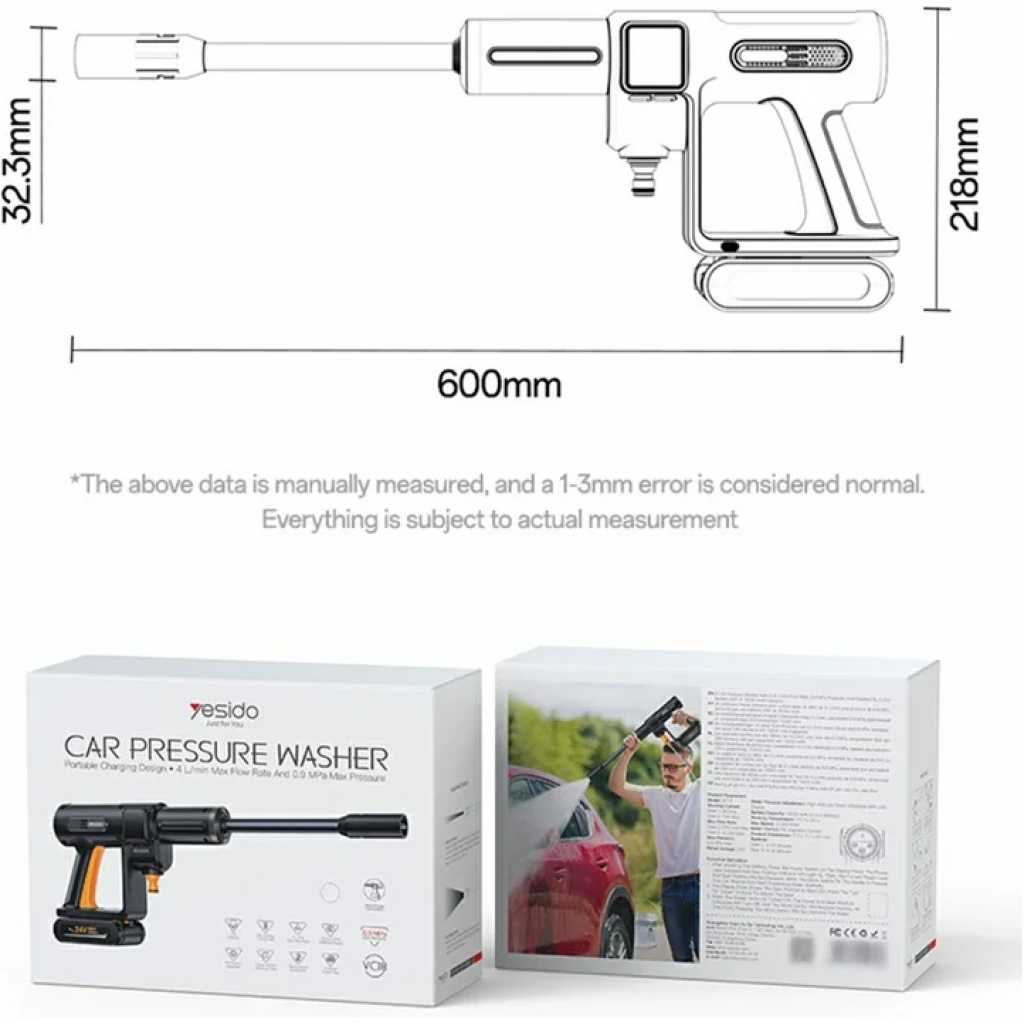 YESIDO VC18 High Pressure Washer Gun 2 Gears Adjustable Cordless Car Cleaner with LED Display
