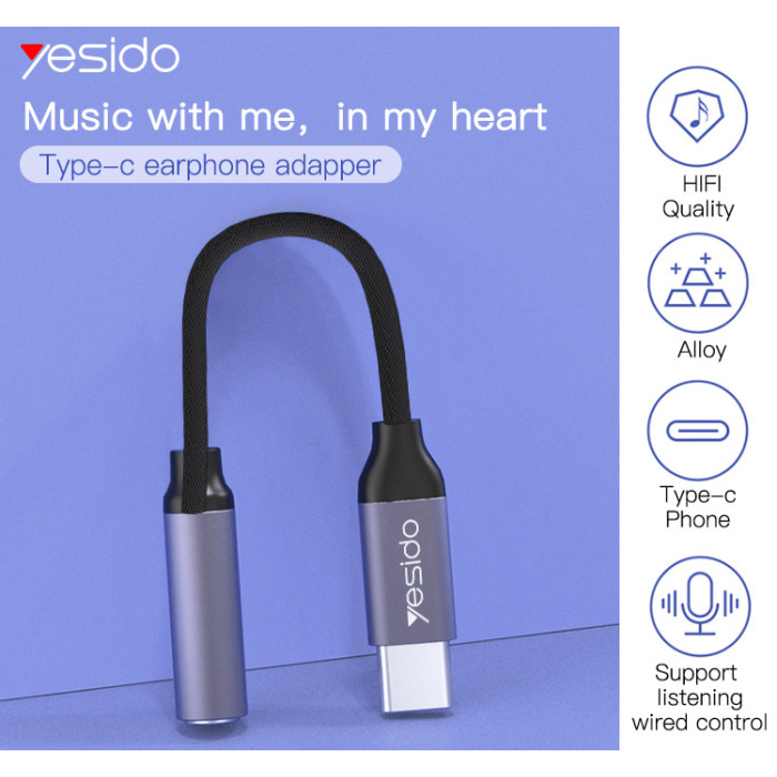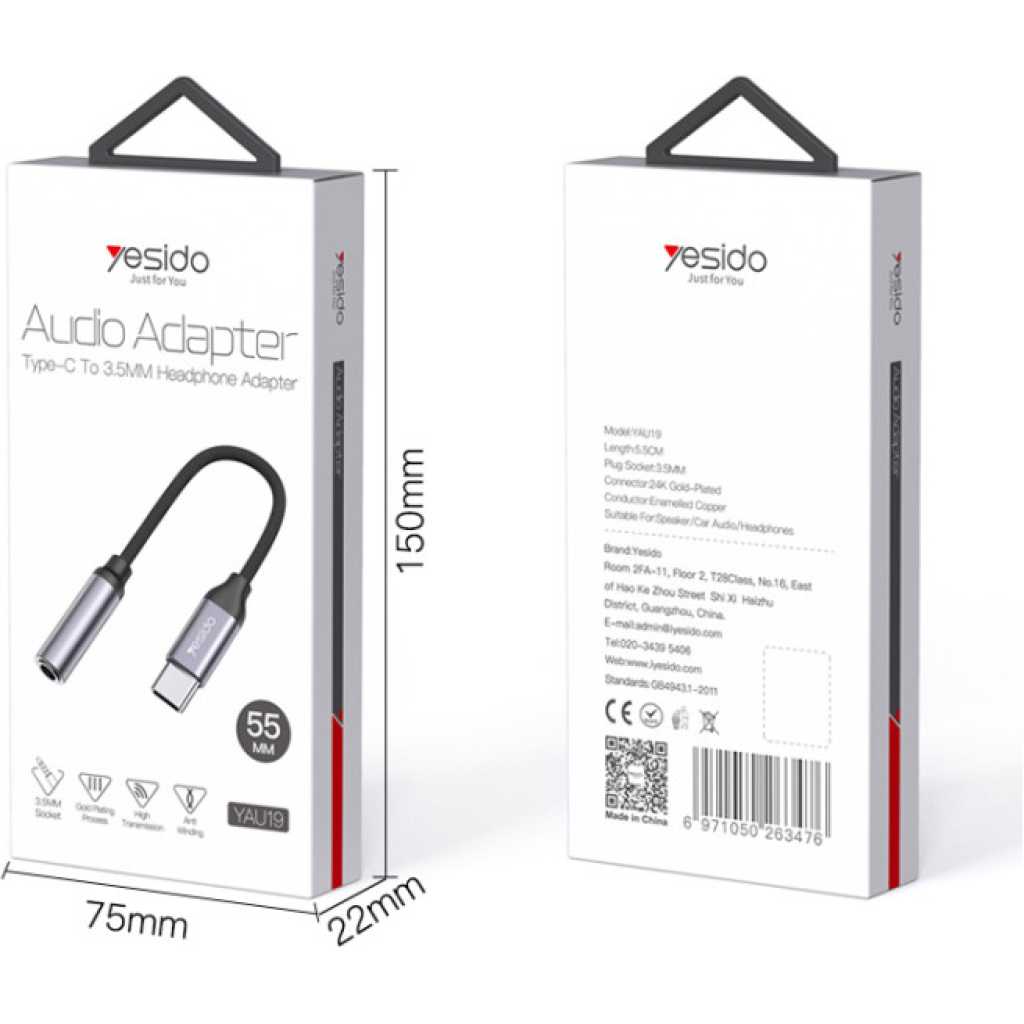 Key Features: High-Quality Audio Conversion: The Yesido YAU19 Type-C to 3.5mm Audio Adapter Cable ensures high-fidelity audio conversion, preserving the original sound quality of your music, videos, and calls. Durable Construction: Crafted with premium materials, including a sturdy Type-C connector and a reinforced 3.5mm audio jack, this adapter cable is built to withstand daily use and provide long-lasting performance. Universal Compatibility: Designed to work seamlessly with a wide range of devices, including smartphones, tablets, laptops, and more, Sleek and Compact Design: With its sleek and compact design, this adapter cable is highly portable, making it convenient to carry with you wherever you go. Whether you’re traveling Plug-and-Play Convenience: The Yesido YAU19 adapter cable offers plug-and-play convenience, allowing you to connect your Type-C device to any standard 3.5mm audio device instantly.