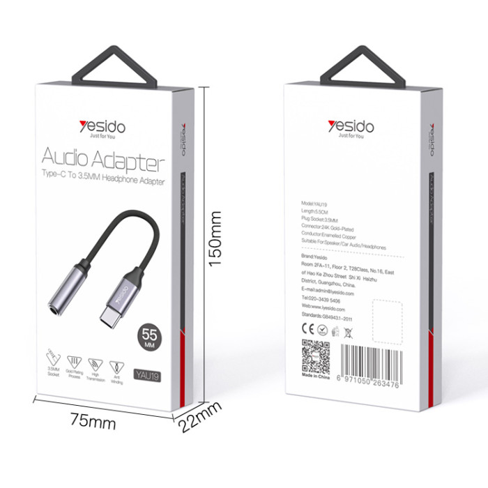 High-Quality Audio Conversion: The Yesido YAU19 Type-C to 3.5mm Audio Adapter Cable ensures high-fidelity audio conversion, preserving the original sound quality of your music, videos, and calls. Durable Construction: Crafted with premium materials, including a sturdy Type-C connector and a reinforced 3.5mm audio jack, this adapter cable is built to withstand daily use and provide long-lasting performance. Universal Compatibility: Designed to work seamlessly with a wide range of devices, including smartphones, tablets, laptops, and more, the Yesido YAU19 adapter cable is compatible with any device featuring a Type-C port and requiring a 3.5mm audio connection. Sleek and Compact Design: With its sleek and compact design, this adapter cable is highly portable, making it convenient to carry with you wherever you go. Whether you’re traveling, commuting, or simply on the move, you can enjoy your favorite audio content without any hassle. Plug-and-Play Convenience: The Yesido YAU19 adapter cable offers plug-and-play convenience, allowing you to connect your Type-C device to any standard 3.5mm audio device instantly. There’s no need for additional drivers or complicated setup procedures, making it effortless to use.