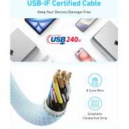 Fast Charging: Supports up to 20W Power Delivery for quick and efficient charging. Durable Design: Features braided nylon construction for enhanced durability and resistance to kinking or breaking. Elegant Look: Stealthy all-black design with reinforced connectors that won’t rust or discolor. Data Transfer: USB 2.0 interface supports data transfer speeds up to 480Mbps. Broad Compatibility: Works with most Lightning devices, including the latest iPhones and iPads.