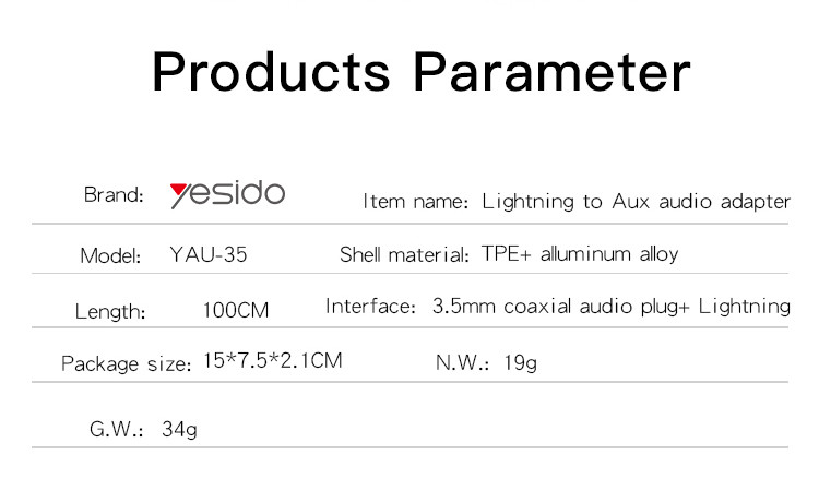 YAU35 Lightning To 3.5MM Plug Audio Cable