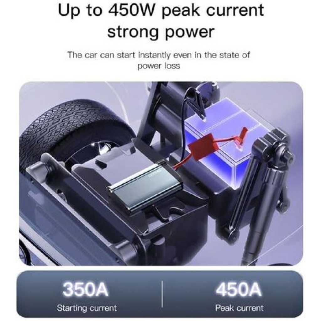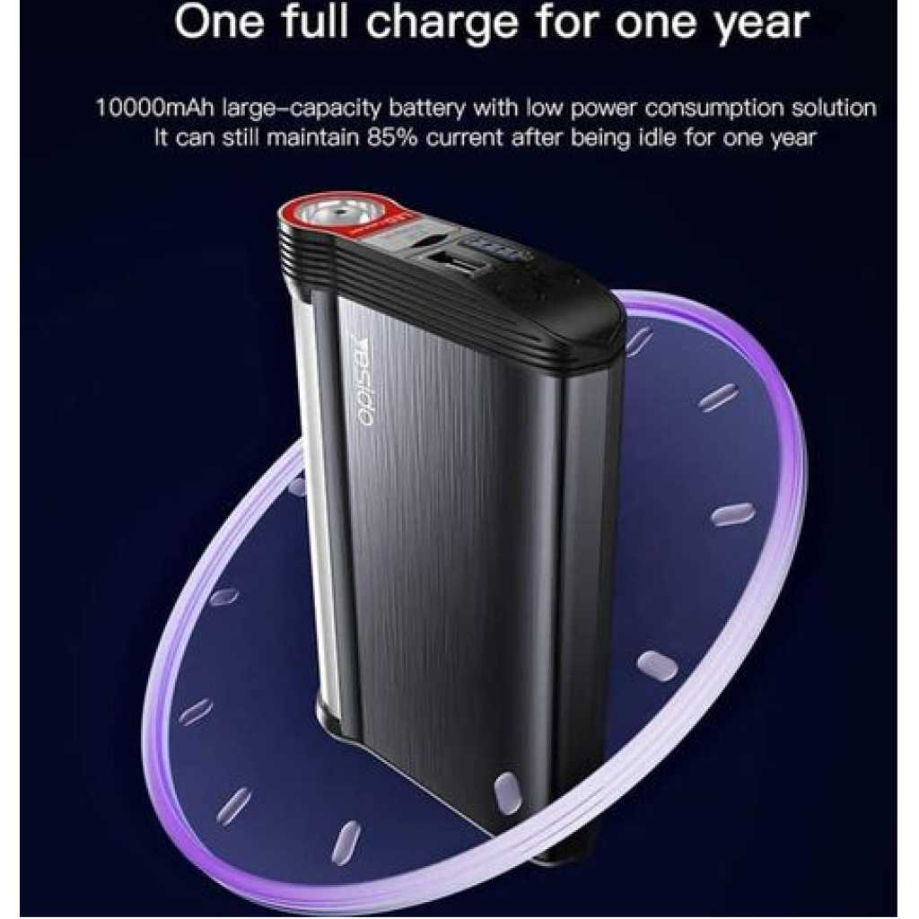 Key Features: Yesido YP36 Emergency Jump Starter 10000mAH Power Bank Car- Multicolor 10,000 mAh battery for diesel and petrol cars with LED lighting Super Energy Air Car Jump Starter Power: 10000 mAh. Product Type: Super Energy Air Jump Starter / Power Bank – 10000mAh Input (Type C): 5V-2.4A. Output (USB): 5V – 2.4A. LED emergency light and night light with four light modes (strong/weak)/flashlight/flash/SOS emergency The lighting power is 6 watts to give a wide light and flash Flashlight: 2W. Low energy use Long battery life and ease of use even when only 25% power remains Starting current: 12V/350A up (450A max) Battery charging time with electrolyte: about 4.5 hours for 5V-2.4A. Gasoline cars with a capacity of 5.0 liters. Diesel vehicles with a capacity of 3.0 liters