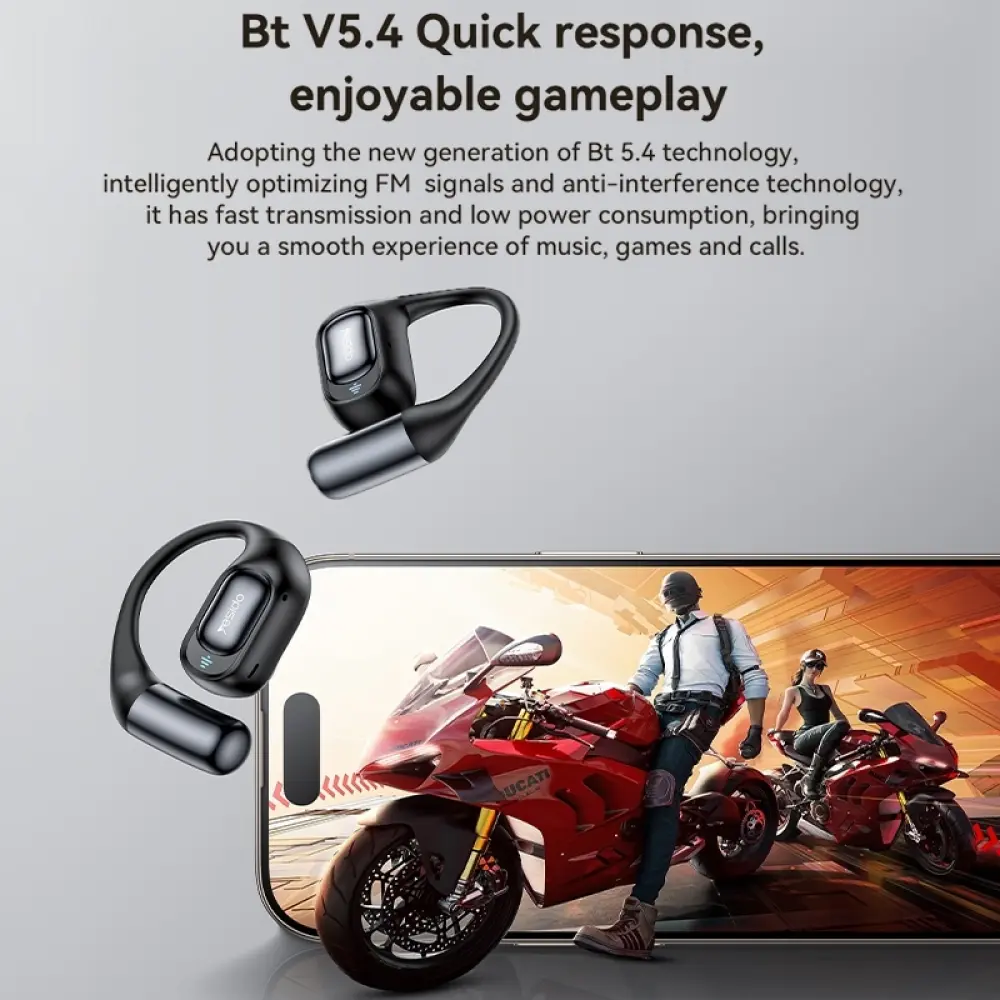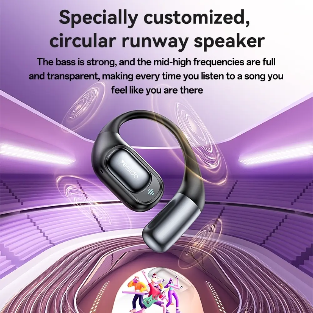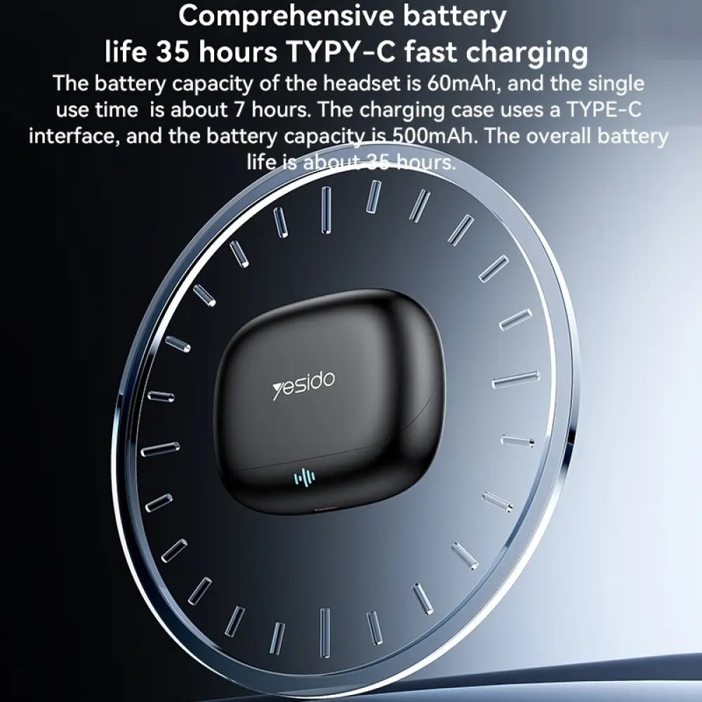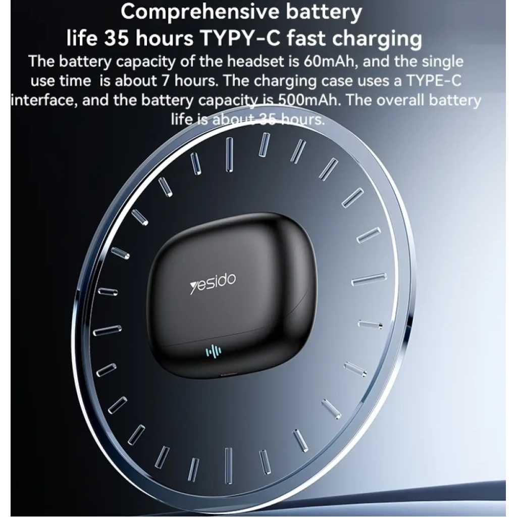 Experience premium audio and comfort with the Yesido YSP23 Open Ear Bluetooth Earphones. Featuring advanced ANC (Active Noise Cancellation) and ENC (Environmental Noise Cancellation), these earphones deliver crystal-clear sound and high-definition calls in any environment. Designed for all-day wear, the ergonomic ear hooks are crafted from skin-friendly liquid silicone, ensuring maximum comfort and a secure fit. With a total battery life of up to 35 hours (with the charging case), these earphones are perfect for long commutes, workouts, and extended calls. Key Features: Dual Noise Reduction: ANC active noise cancellation reduces ambient noise by up to -20dB. EC dual-microphone noise reduction ensures clear and crisp call quality. Open Ear Design: OWS open-type earphones allow for comfortable and secure wear without burdening your ears. Extended Battery Life: Up to 7 hours of single listening time and a total of 35 hours with the charging case. High-Quality Audio: Clear, noise-free sound with rich bass and transparent mid-high frequencies. Compact and Portable: Lightweight and easy to carry, with a space-saving charging case. Voice Assistant Support: Integrated voice assistant functionality for hands-free control. Ergonomic Fit: Liquid silicone ear hooks and a feather-light design for maximum comfort during prolonged use. Benefits Superior Noise Isolation: Experience uninterrupted listening and high-definition calls in noisy environments. All-Day Comfort: Soft, skin-friendly ear hooks ensure a secure and pain-free fit. Portable Power: Long-lasting battery life and fast charging via USB-C for uninterrupted usage. Enhanced Connectivity: Bluetooth 5.4 technology for stable and efficient connections up to 10 meters. Versatile Use: Ideal for commuting, workouts, and extended listening sessions. Specifications: Material: PC + ABS + UV Bluetooth Version: AB8932E V5.4 Bluetooth Protocols: HFP/HSP/A2DP/AVRCP Noise Reduction Depth: -20dB Single Listening Time: ~7 hours (at 80% volume) Total Listening Time (with Case): ~35 hours Earphone Battery Capacity: 3.7V/60mAh x 2 Charging Case Capacity: 3.7V/500mAh Charging Time: ~4-5 hours Charging Interface: USB-C Care Instructions: Clean earphones with a soft, dry cloth to remove debris. Store in the charging case when not in use to prevent damage. Avoid exposing earphones and the charging case to extreme heat or moisture. Dimensions: Compact Design: Lightweight and portable for easy storage and carrying. Ergonomic Fit: Designed for all-day wear without discomfort. Key Features: Yesido Brand Yesido black Colour black in-ear Design in-ear wireless Connection type wireless wireless TWS earbuds Type wireless TWS earbuds NFC, voice assistant call, mp3 player, volume control, FM radio, answering a call Functions NFC, voice assistant call, mp3 player, volume control, FM radio, answering a call