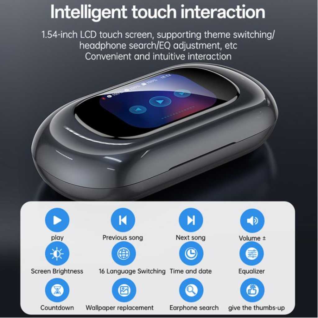 Key Features: 1. High-performance ultra-linear driver unit with titanium diaphragm speaker delivers exceptional sound quality, comfortable and effortless listening, allowing you to enjoy HiFi-quality sound. 2. Bluetooth 5.4 for lower latency, more stable signal, directional narrow-band sound transmission, and high privacy protection. 4. Built-in flexible memory titanium alloy wire adapts to different ear shapes, providing a secure and comfortable fit, as if custom-made. 5. Open acoustic design restores a wide, natural sound field, allowing you to enjoy music and feel safe at the same time. 6. Ultra-long battery life: 7-8 hours of playback on a single full charge, and approximately 32 hours of continuous music playback with the charging case. 7. Versatile LCD display with features including theme switching, volume control, headphone search, and audio EQ.