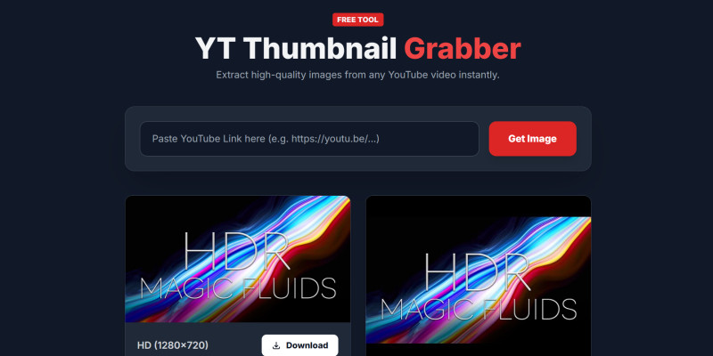 YT Thumbnail Pro - High-Res YouTube Downloader. A lightweight PHP script to instantly fetch and download high-resolution YouTube video thumbnails.