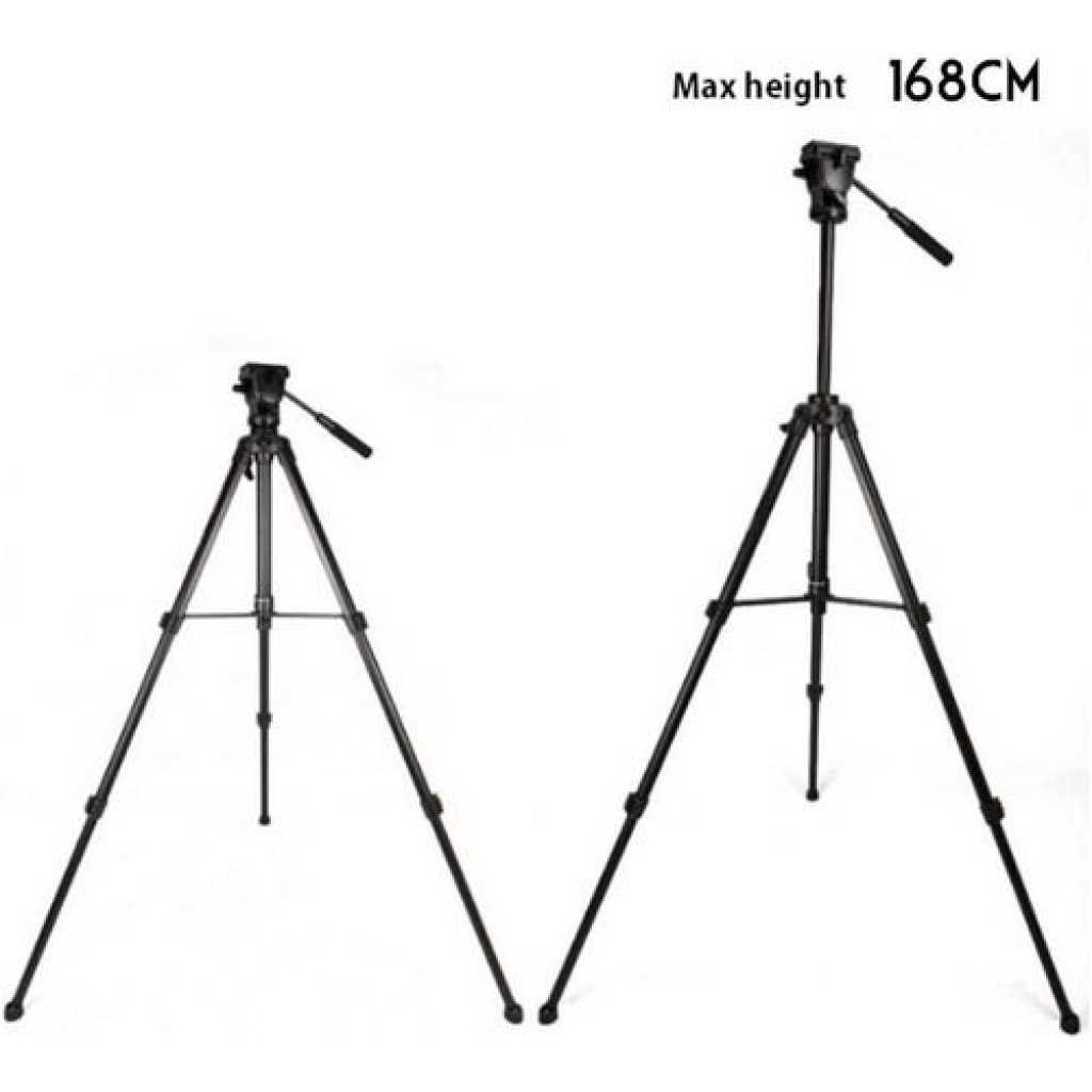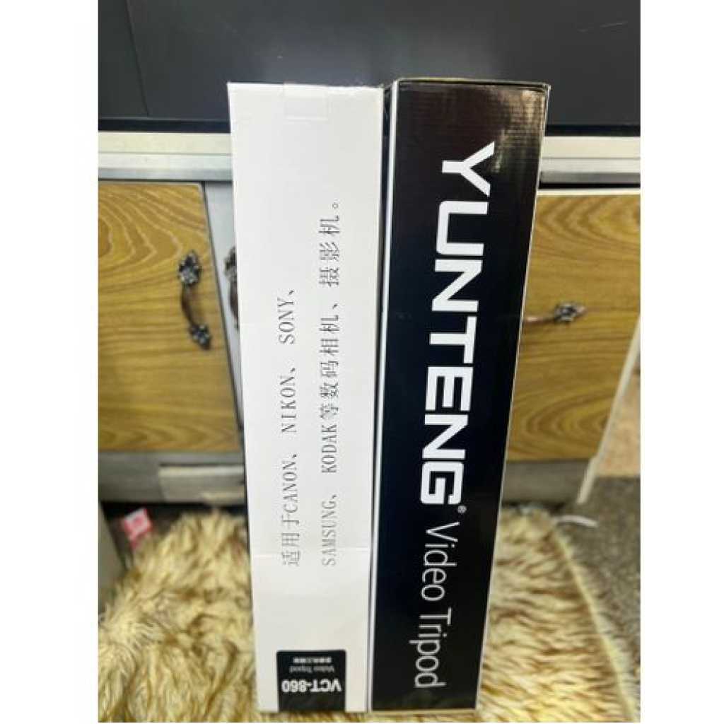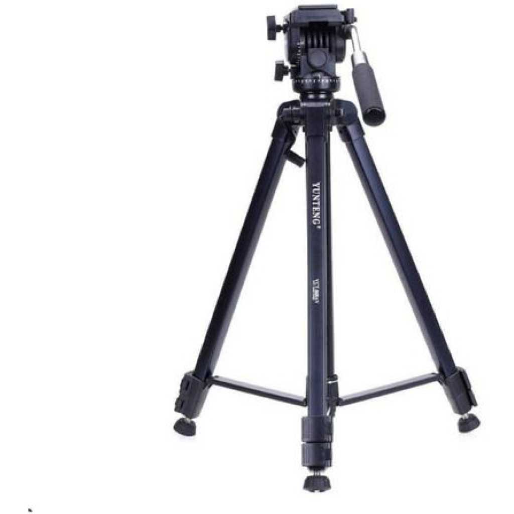 pecification Tripod 3-dimensional Damping Head KitExtend to 1460mm Built-in bubble level 360° horizontal and 90° vertical swivel Ball headGrip for adjusting head position4-sections aluminum legs Gear operated center column Quick release leg lock Non-slip rubber feet Lightweight and portableDetachable quick release plate for quickly connecting to camera or camcorder 1/4″ male thread compatible with all Cameras and Camcorders Comes with carrying bag Ideal for outdoor, travel and timer Key Features: Model: VCT-860AVPTZ type: Panoramic headMaterial: AluminumTripod Sections: 3Maximum height: 1680mmMinimum height: 620mmStorage Height: 660mm Load bearing: 4KG Weight: 1.94kg