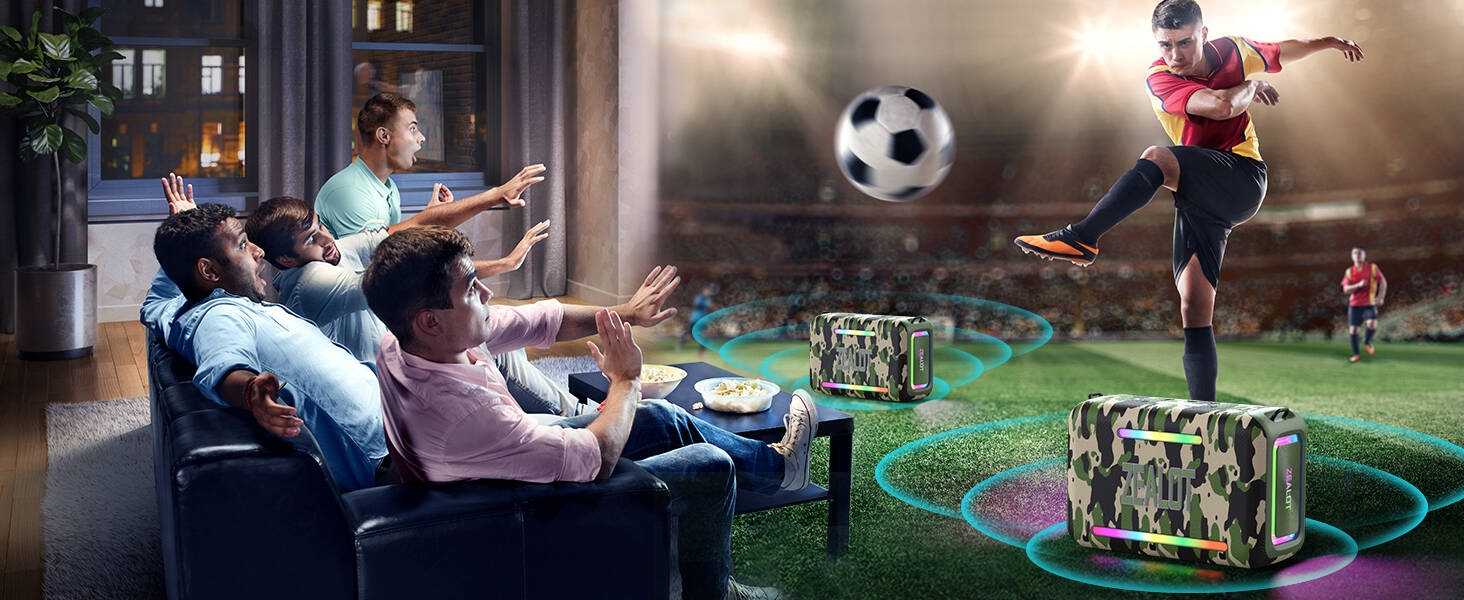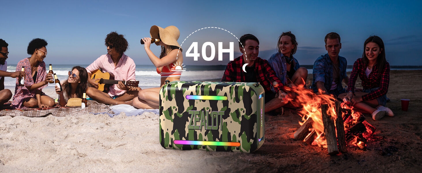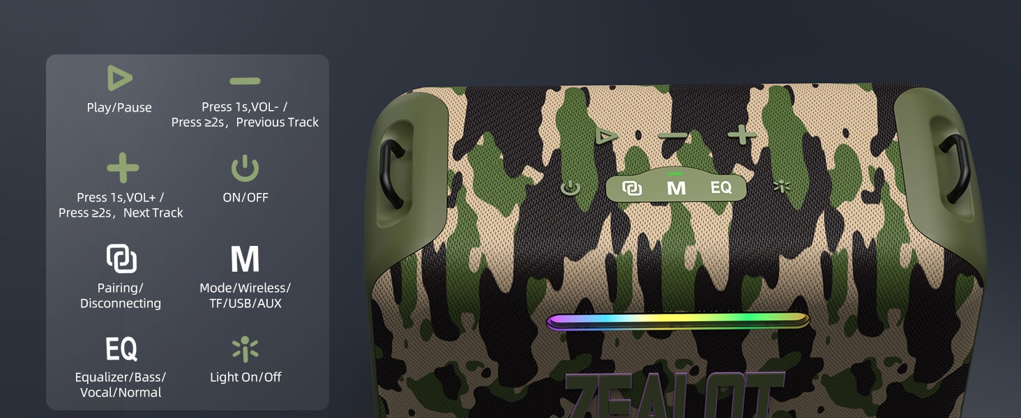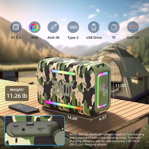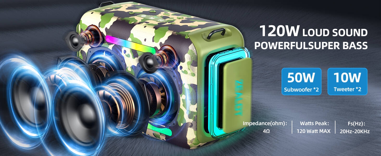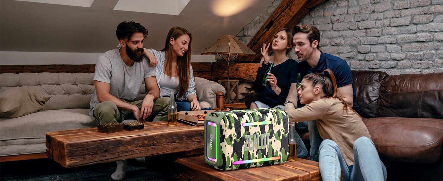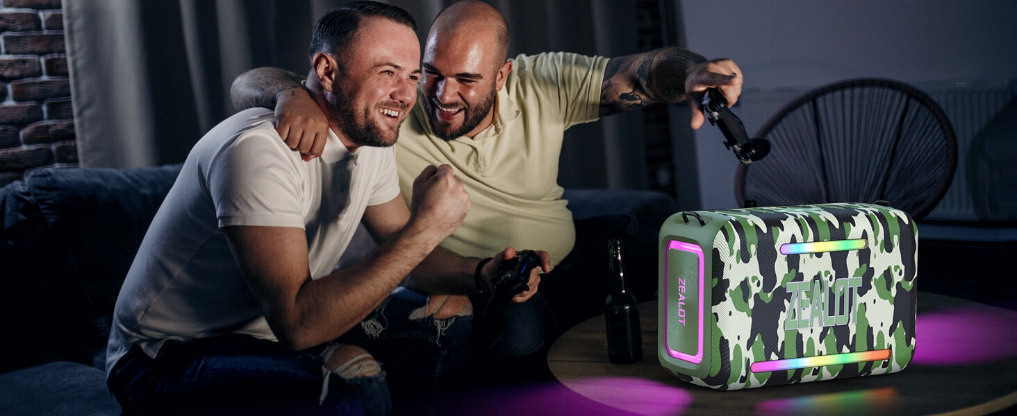 Key Features: 【120W High Power Speaker】120W Loud Bluetooth Speaker equipped with 2*50W subwoofer, 2*10W tweeters and advanced DSP chip to achieve clearer mid-highs, rich and smooth zero-distortion sound, and high-frequency sound up to 40kHz is significantly clearer. 【IPX6 Waterproof Speaker】Zealot water proof Bluetooth speaker is IPX6-rated and very resistant to heavy sprays of water from all directions. It is ideal for outdoor activities such as camping, riding, boating trips, or beach trips. 【Party Wireless Speaker and EQ Mode】 Pair two Zealot S95 speaker to get 240W Max ultra stereo.The bluetooth speakers for party features an EQ button, allowing you to finely tune your audio signal for personalized listening preferences. Experience this outstanding portable home theater Bluetooth speaker for movies, gaming, and parties 【Bluetooth 5.3 and 40H Playback】Our blue tooth speaker adopt advanced Bluetooth 5.3 technology ensures fast and stable music connectivity. Not only can you connect wirelessly via Bluetooth, but you can also enjoy music using the AUX 3.5mm, TF card options and USB drive.ZEALOT portable speakers bluetooth wireless boasts a powerful battery system that provides an astounding 40 hours of playback time at minimum volume. Whether it’s a family barbecue or a camping trip, day or night, the outdoor Bluetooth speaker is designed to suit your needs. NOTE: To ensure charging efficiency, we recommend using a 9V/3A to 20V/2.25A charging adapter. 【Loud Subwoofer Speaker with Led Light Show】120W Peak Powerful Loud Sound Deep Bass Wireless Boombox with 3 colorful light mode,pump up your party with a gorgeous light show that can be synced to the pulse and rhythm of the song playing per time. You can pick up your favorite lighting color to add a stunning touch to bar dance parties, family gatherings, and everything in between.