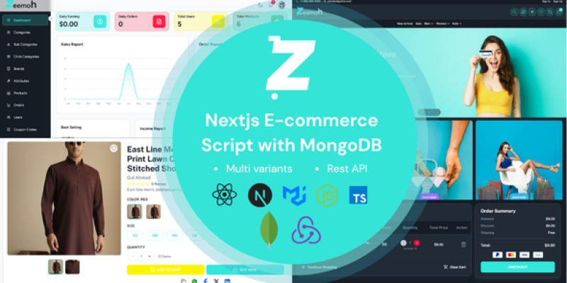Zeemoh – NextJS E-Commerce Script . A modern full-stack Next.js eCommerce script with React.js, Node.js, MongoDB, and Material UI.
