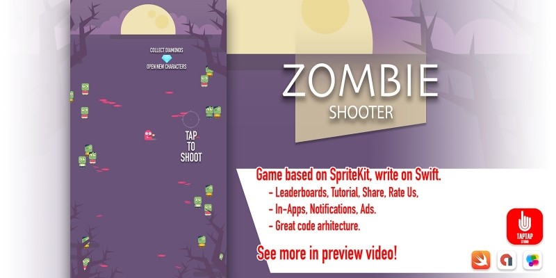 Zombie Shooter - iOS Source Code. Tap to shot and survive! Kill zombies and collect coins! Beat your results and your friends!
